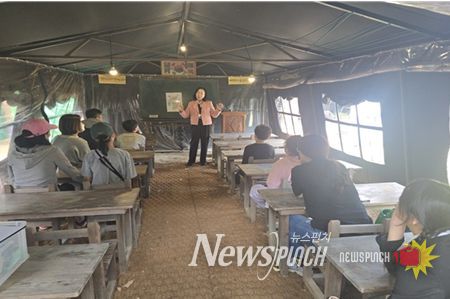 '피란학교 천막교실'은 임시수도기념관 야외 천막교실에서 진행하는 체험 수업으로, 피란수도 부산과 관련된 다양한 프로그램을 제공한다.