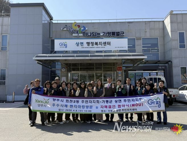 뉴스펀치 박상훈 기자 | 양주시 회천2동 주민자치회는 지난 8일 주민자치회 활성화를 위해 가평군 상면을 방문해 벤치마킹을 실시하고 자매결연 협약을 체결했다.