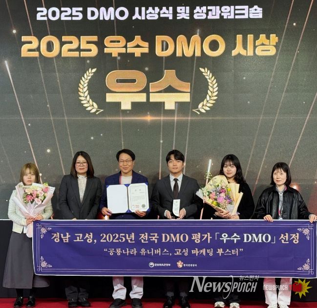 뉴스펀치 박세훈 기자 | 경남 고성문화관광재단이 지난 8일 문화체육관광부와 한국관광공사가 주관한 2025년 지역관광추진조직(DMO) 육성 지원 사업 최종 성과 평가에서 우수DMO 기관으로 선정됐다.