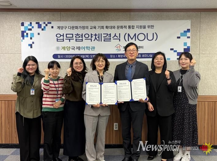 뉴스펀치 정홍균 기자 | 인천광역시 계양국제어학관과 계양구가족센터가 지난 4월 9일 업무협약(MOU)을 체결하고, 다문화가정 학생들의 교육 기회 확대와 지역사회 통합을 위한 협력체계 구축에 나섰다.