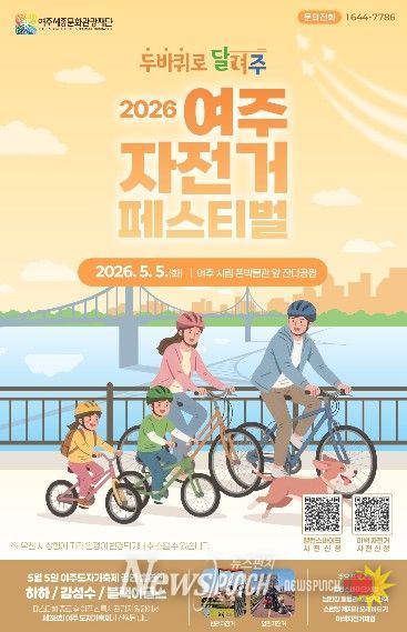 뉴스펀치 박상훈 기자 | 여주세종문화관광재단은 어린이날을 맞아 오는 5월 5일 오전 10시부터 오후 2시까지 금은모래강변공원 폰박물관 앞에서 '2026 여주 자전거 페스티벌, 두 바퀴로 달~여주'를 개최한다고 밝혔다.