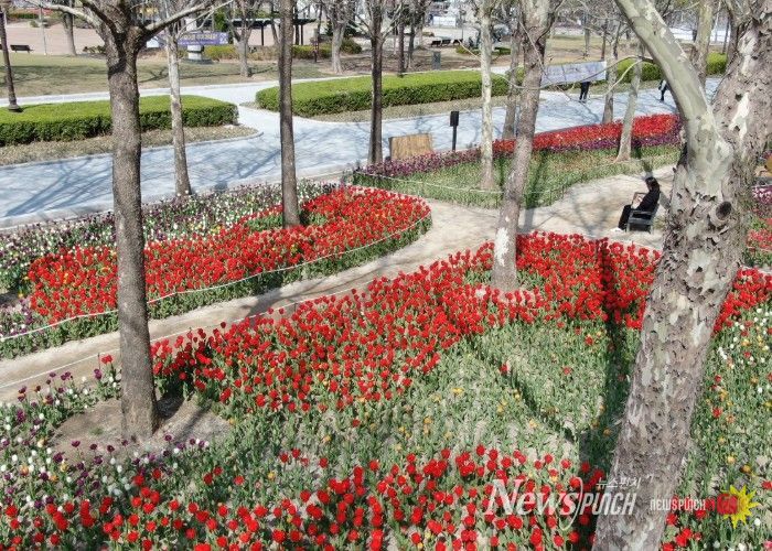 지난해 가을에 식재한 9만본의 튤립, 수선화를 포함해 총 13만6,000본의 형형색색 봄꽃이 만개했다.