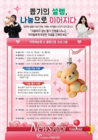 뉴스펀치 박상훈 기자 | 의정부시자원봉사센터는 4월 13일부터 4월 30일까지 자원재순환&활동인증 프로그램인“뽑기의 설렘, 나눔으로 이어지다”참여자를 모집한다.