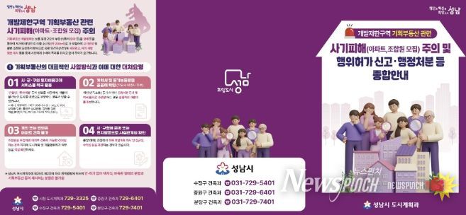 뉴스펀치 박상훈 기자 | 성남시는 최근 개발이 불가능하거나 제한적인 개발제한구역(그린벨트) 내 토지를 곧 해제될 것처럼 속여 고가에 판매하는 이른바 ‘기획부동산’ 사기가 증가함에 따라 시민 주의를 당부하고, 안내문을 제작·배부한다고 밝혔다.