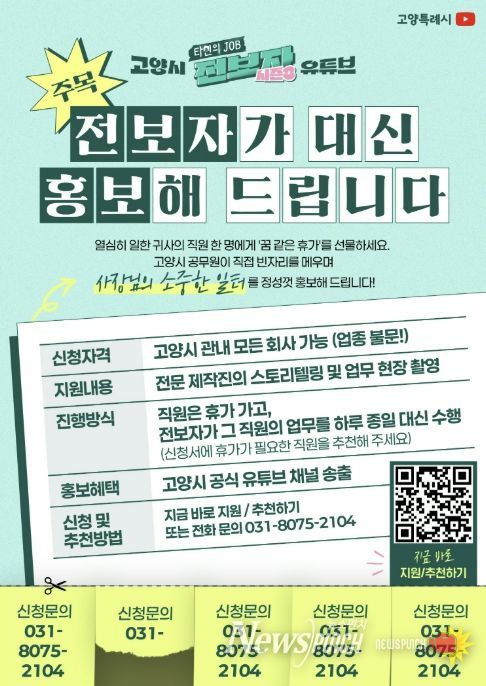 뉴스펀치 박상훈 기자 | 고양특례시가 공식 유튜브 채널의 직업 체험 콘텐츠 ‘전보자(타인의 Job)’ 시즌 3를 맞아, 시민 삶의 현장으로 직접 찾아가는 홍보 프로젝트에 참여할 기업과 일터를 모집한다고 14일 밝혔다.
