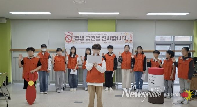뉴스펀치 박상훈 기자 | 역동초등학교는 4월 14일부터 17일까지 전교생을 대상으로 평생 금연 선포식과 흡연 예방 체험활동을 운영했다.