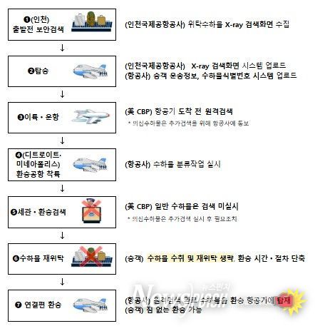 이번 조치는 국토교통부와 미국 교통보안청(TSA), 관세국경보호청(CBP) 간 협력을 통해 이뤄진 것으로, 양국은 첨단 항공보안 기술을 활용한 위탁수하물 원격검색을 통해 환승 절차를 간소화하고 승객 편의를 획기적으로 개선하기로 합의했다.