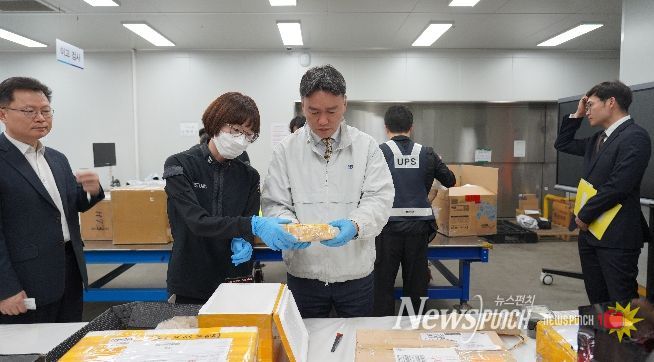 뉴스펀치 정홍균 기자 | 이종욱 관세청 차장은 4월 16일 인천공항세관 특송물류센터와 부천우편집중국을 방문하여 통관 단계 마약류 단속 프로세스를 점검했다.