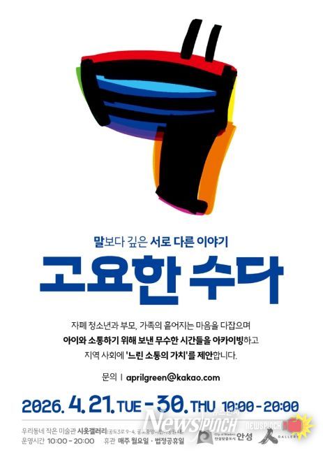 뉴스펀치 박상훈 기자 | 안성시 시옷갤러리는 오는 4월 21일부터 4월 30일까지 자폐 청소년과 그 가족이 함께 참여하는 전시 《고요한 수다》를 개최한다고 밝혔다.