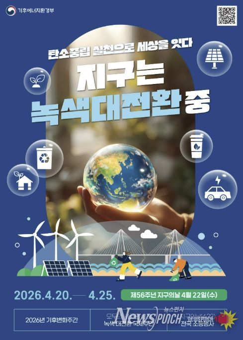 뉴스펀치 박상훈 기자 | 화성특례시는 제56주년 지구의 날(4월 22일)을 맞아 4월 20일부터 24일까지 ‘기후변화주간’을 운영하고, 시민 참여형 탄소중립 실천 캠페인을 추진한다.