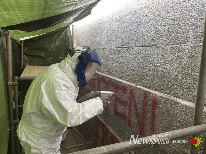 뉴스펀치 김희경 기자 | 문화재청은 지난해 12월 16일과 17일 발생한 경복궁 영추문과 국립고궁박물관 쪽문 주변 궁장(궁궐 담장)의 스프레이 낙서에 대한 보존처리를 12월 28일 완료해 점검(모니터링)을 거친 후 1월 4일 오전 완전 공개하고, 향후 국가유산에 대한 훼손 재발방지 종합대책을 발표한다.
