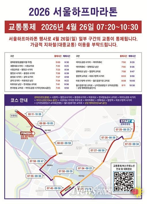 뉴스펀치 박상훈 기자 | 서울시는 4월 26일 오전 7시 30분 광화문광장을 출발해 여의도공원과 상암 월드컵공원으로 이어지는 ‘2026 서울하프마라톤대회’를 개최한다.