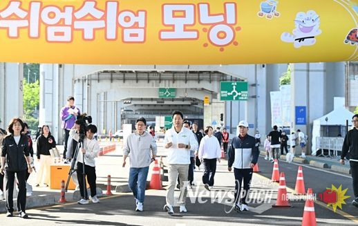 뉴스펀치 박상훈 기자 | 오세훈 서울시장은 26일 아침 ‘2026 차 없는 잠수교 뚜벅뚜벅 축제’ 부대 행사로 열린 ‘쉬엄쉬엄 모닝’에 참여했다.