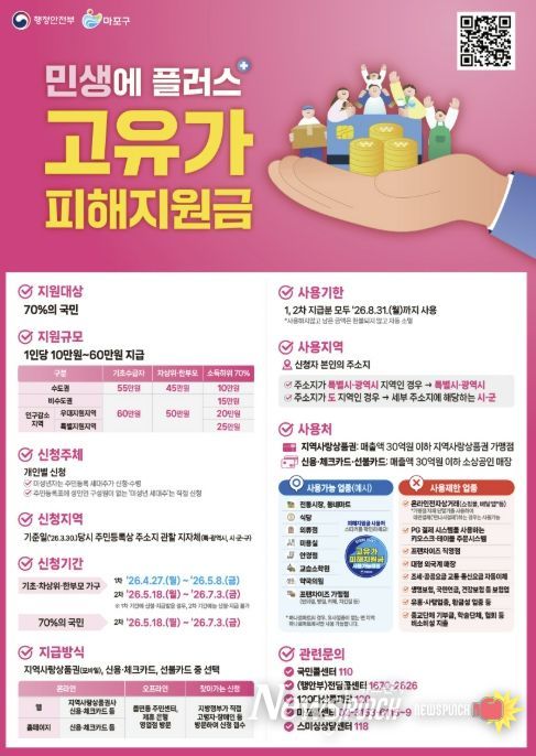 뉴스펀치 박상훈 기자 | 마포구는 중동 전쟁 여파로 이어진 고유가·고물가 상황 속에서 구민의 경제적 부담을 덜고 지역경제에 활력을 불어넣기 위해 ‘고유가 피해지원금’을 지급한다.