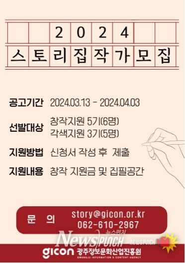광주광역시(시장 강기정)는 ‘2024년 OTT플랫폼 콘텐츠 기획개발 사업’을 통해 광주 스토리 창작 작가를 오는 4월 3일까지 모집한다.