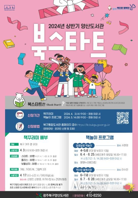 뉴스펀치 조은별 기자 | 광주시 북구가 1세부터 7세까지의 지역 영유아를 대상으로 5개 구립도서관(중흥․일곡․운암․양산·신용)에서 ‘북스타트 책꾸러미’를 배부한다고 20일 밝혔다.