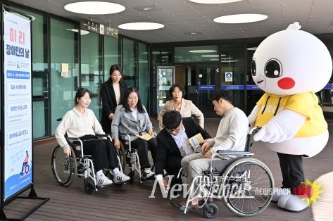 특히 이날 김이강 서구청장과 공직자 15명은 직접 휠체어를 타고 구청 곳곳을 다니며 업무를 수행하고 장애체험을 통해 느낀 점을 생각카드에 정리하는 시간을 가졌다. 또한 체험이 끝난 후 경험한 수기를 나누며 현실적 차원의 정책 제안을 펼치는 공감 토크쇼를 진행했다.
