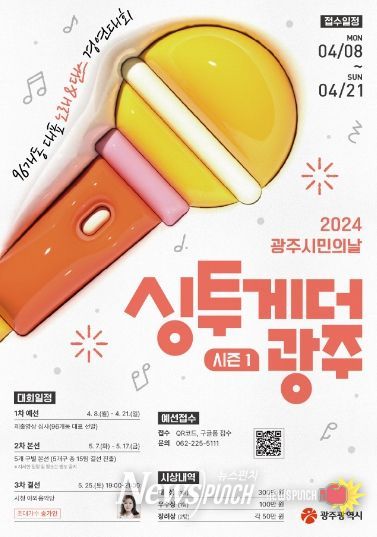 뉴스펀치 조은별 기자 | 광주광역시는 ‘제59회 광주 시민의 날’ 시민참여 노래&댄스 경연 프로그램 ‘싱투게더 광주 시즌1’ 참가자를 모집한다.