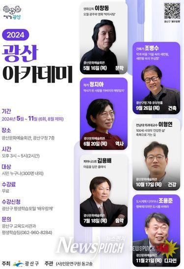 광산구 관계자는 “광산아카데미가 인문학적 사고 능력과 빠르게 변화하는 현대 사회에 유연하게 대응할 힘을 기르는 소통과 배움의 장이 되길 바란다”고 말했다.