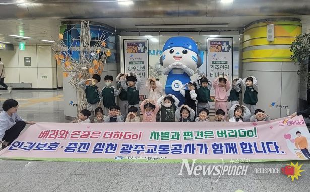뉴스펀치 조은별 기자 | 광주교통공사는 어린이날을 맞아 최근 혜화유치원 어린이 50여명을 광주시 서구 김대중컨벤션센터역 세계인권전시관으로 초청해 어린이날 특별 행사인 ‘인권아 놀자’를 펼쳤다.