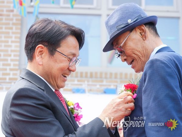 강 시장은 공경과 감사의 마음을 담아 어르신에게 카네이션을 달아드리고, 유공자 표창을 수여했다.
