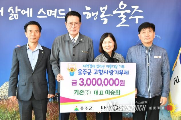 뉴스펀치 임정용 기자 | 이승희 키존㈜ 대표가 24일 울주군에 고향사랑기부제의 성공적 안착과 지역 발전을 위해 고향사랑기부금 300만원을 기탁했다.