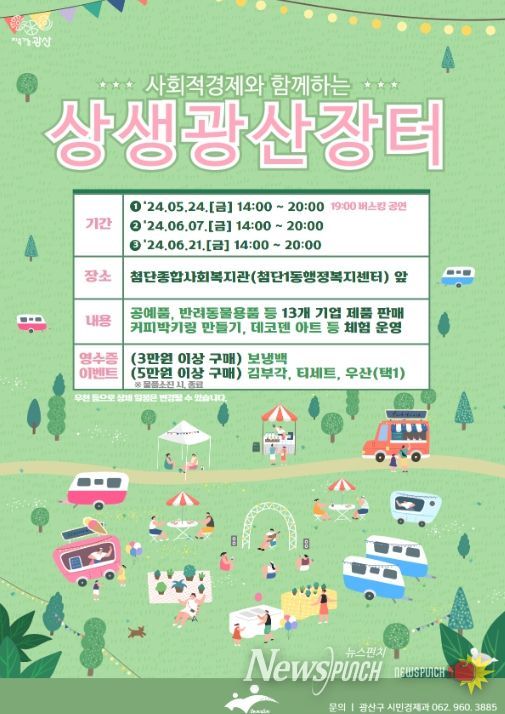 뉴스펀치 조은별 기자 | 광주광역시 광산구는 사회적경제 활성화를 위한 정기장터인 ‘상생광산장터’를 운영한다고 밝혔다.