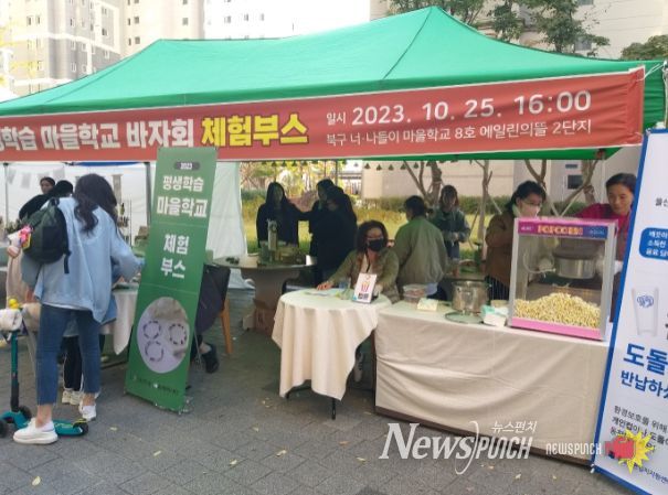 북구는 지난 25일 매곡동 에일린의뜰 2단지 아파트에서 평생학습 마을학교 바자회를 열었고, 28일에는 줌파크 아파트에서 바자회를 진행할 예정이다.
