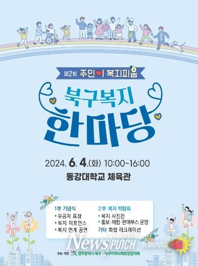 뉴스펀치 조은별 기자 | 광주시 북구가 4일 오전 10시 동강대학교 체육관에서 복지 종사자 500여 명이 한데 모여 어울리는 ‘복지 한마당’ 행사를 개최한다고 밝혔다.