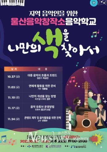 뉴스펀치 임정용 기자 | 울산 중구문화의전당 산하 울산음악창작소가 지역 음악인을 위한 음악학교 ‘나만의 색을 찾아서’를 운영한다.