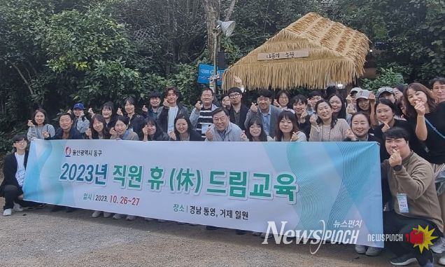 뉴스펀치 임정용 기자 | 울산시 동구청은 10월 26일~27일 이틀간 격무와 고질민원으로 어려움을 겪고 있는 직원들의 재충전을 위한 '2023년 직원 휴드림 교육'을 거제와 통영 일대에서 실시했다.