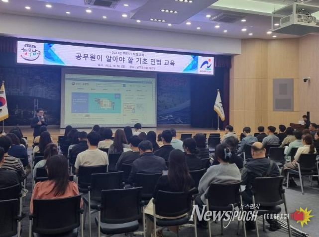 뉴스펀치 임정용 기자 | 울산 남구(구청장 서동욱)는 30일 남구청 6층 대강당에서 전 직원을 대상으로‘공무원이 알아야 할 기초 민법 교육’이라는 주제로 직장교육을 실시했다.