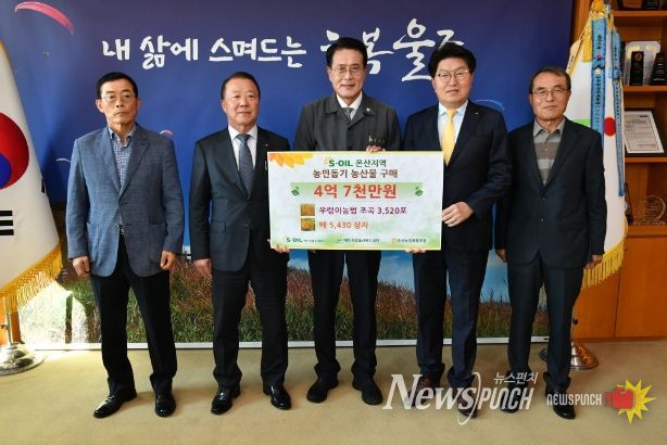 뉴스펀치 임정용 기자 | S-OIL(주) 울산복지재단(이사장 박봉수)이 30일 온산지역에서 키운 배와 친환경 우렁이농법 조곡 등 총 4억7천만원 상당의 온산 지역농산물을 매입했다.