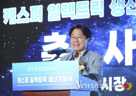 강기정 시장은 축사를 통해 “광주글로벌모터스는 지난해 캐스퍼 10만대 생산에 이어 캐스퍼 전기차로 다시 한 번 비상한다. 이로써 광주는 두 개의 자동차 브랜드를 생산하는 대한민국의 유일한 도시가 됐다”며 “GGM은 광주가 대한민국 미래차 중심도시로 힘차게 도약할 수 있는 한 축이자, 대한민국 표준이 될 상생일자리 모델이다. 이를 위해 힘차게 달려 나가자”고 강조했다.