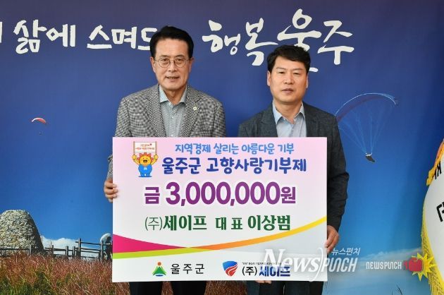 뉴스펀치 임정용 기자 | 이상범 ㈜세이프 대표가 31일 고향사랑기부제의 안정적 정착과 지역 발전을 위해 고향사랑기부금 300만원을 기탁했다.