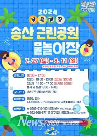 박병규 광산구청장은 “올해 처음 여는 송산근린공원 어린이 물놀이장이 시민에게 시원한 여름을 선물하는 최고의 도심 피서지가 되길 바란다”며 “가장 신나고, 안전한 물놀이 공간이 되도록 수질‧안전 관리에도 만전을 기하겠다”고 밝혔다.