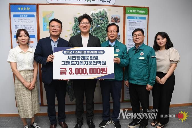 뉴스펀치 유동국 기자 | 시티장례문화원, 그랜드자동차 운전학원이 완주군 저소득층 및 호우피해가정을 위해 성금 300만 원을 전달했다.