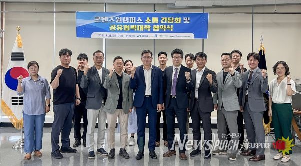 뉴스펀치 유동국 기자 | (재)전북특별자치도 콘텐츠융합진흥원은 23일 전북특별자치도, 우석대학교, 전주대학교, 호원대학교와 전북 융합형 창의인재 육성을 위한 소통 간담회 및 업무협약을 체결했다.