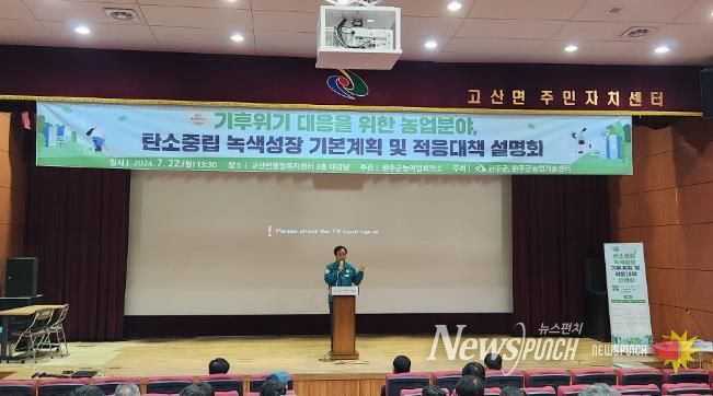 뉴스펀치 유동국 기자 | 완주군이 기후위기 대응을 위한 농업분야 설명회를 갖고, 농업인들에게 명확한 정보를 제공해 큰 호응을 얻었다.