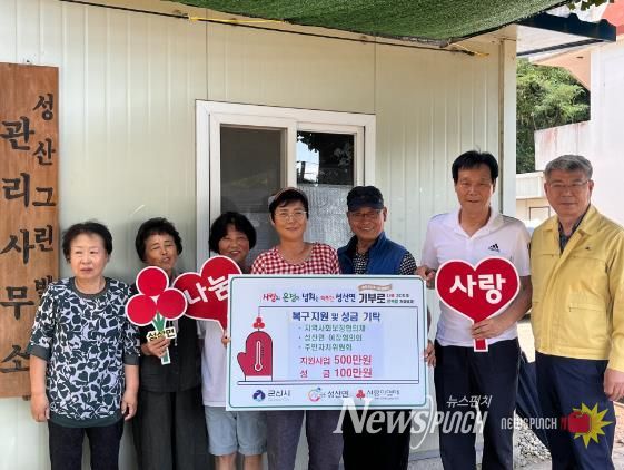 성산면은 지역사회보장협의체(500만원)와 이장단(50만원), 주민자치위원회(50만원) 등 지역 자생단체들이 총 6백만원의 성금을 기탁했다고 밝혔다.