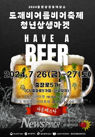 뉴스펀치 조은별 기자 | 광주 동구는 오는 26일부터 27일까지 충장로 5가 일원에서 덥고 습한 날씨를 날려버릴 시원함을 선사할 ‘도깨비 여름 비어 축제×청년 상생 마켓’을 개최한다고 밝혔다.