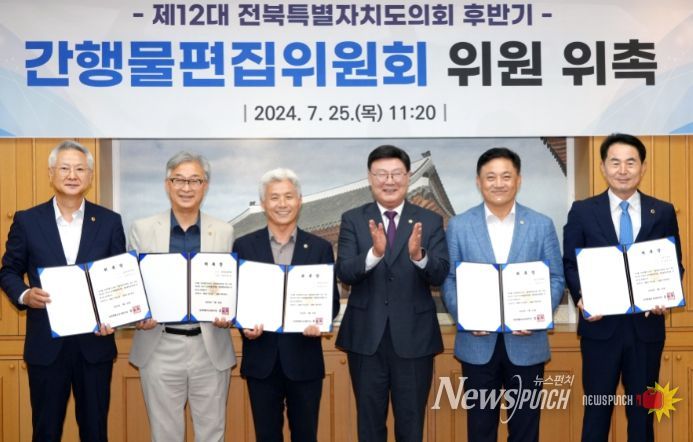 뉴스펀치 유동국 기자 | 전북특별자치도의회는 25일 의장실에서 제12대 도의회 후반기 간행물편집위원회 위원 위촉식을 가졌다.