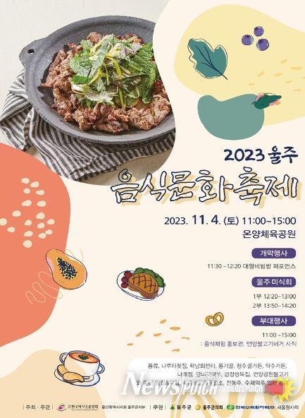 뉴스펀치 임정용 기자 | 울주의 맛을 알리기 위한 ‘2023 울주음식문화축제’가 오는 4일 울주군 온양체육공원에서 막을 올린다.
