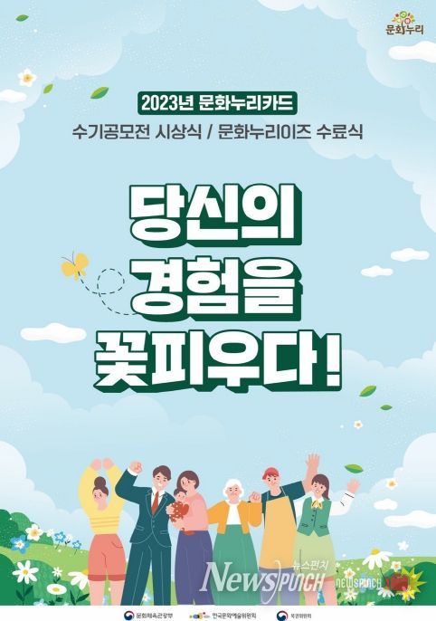 뉴스펀치 김희경 기자 | 문화체육관광부는 한국문화예술위원회(위원장 정병국)와 함께 취약계층의 문화 활동을 지원하는 통합문화이용권 수기공모전을 열고 수상자 총 20명을 발표했다. 이용자 수기 부문 대상(문체부 장관상)에는 문화누리카드를 만난 후 일어난 삶의 희망적인 변화를 ‘사랑의 신’으로 비유한 '큐피트를 만나다'가 선정됐다. ‘제10회 문화누리카드 수기공모전’ 시상식은 11월 2일 오후 2시, 포스트타워(서울 중구)에서 열리며, 장미란 제2차관이 시상식에 참석해 수상자들을 격려할 예정이다.