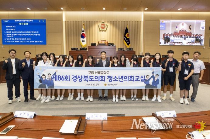 뉴스펀치 김종율 기자 | 경상북도의회는 9월 10일 본회의장에서 포항 신흥중학교 학생 15여명이 참여한 가운데 『제86회 경상북도의회 청소년의회교실』을 개최했다.