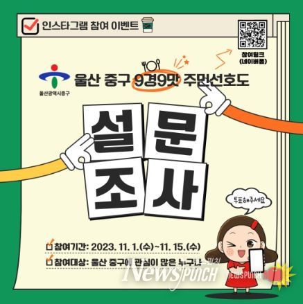 뉴스펀치 임정용 기자 | 울산 중구가 지역 대표 볼거리·맛거리 ‘9경 9맛’을 선정하기 위해 오는 10월 15일까지 주민선호도 조사를 실시한다.