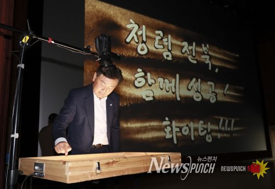 먼저 전은선 작가가 청렴콘텐츠 공모전 수상작을 샌드아트로 구현했으며, 김관영 지사가 직접 샌드아트를 통해 ‘청렴 전북, 함께 성공! 파이팅!!!’이라는 청렴 메시지를 전 직원에게 전달했다.