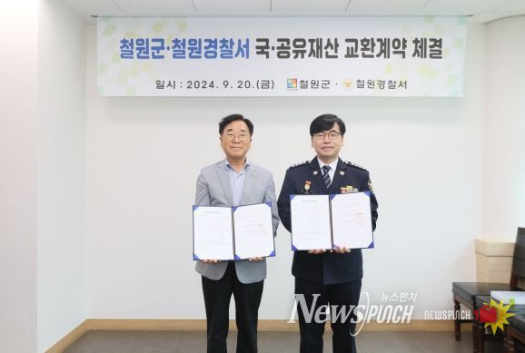 뉴스펀치 김호정 기자 | 철원군과 철원경찰서는 9월 20일 철원군청에서 국·공유재산 교환계약 체결식을 가졌다.