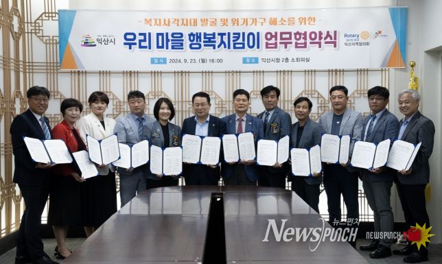 시는 23일 국제로타리 3670지구 익산지역협의회 소속 10개 로타리클럽과 '우리 마을 행복지킴이' 업무협약을 체결했다.
