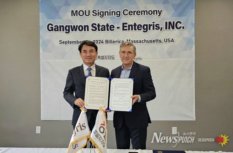 뉴스펀치 김호정 기자 | 강원특별자치도는 9월 26일(현지시간) 미국 매사추세츠주 빌레리카의 인테그리스 본사에서 ‘강원형 반도체 생태계 조성 및 글로벌 협력체계 구축을 위한 업무 협약식’을 개최하고 시설을 시찰했다.